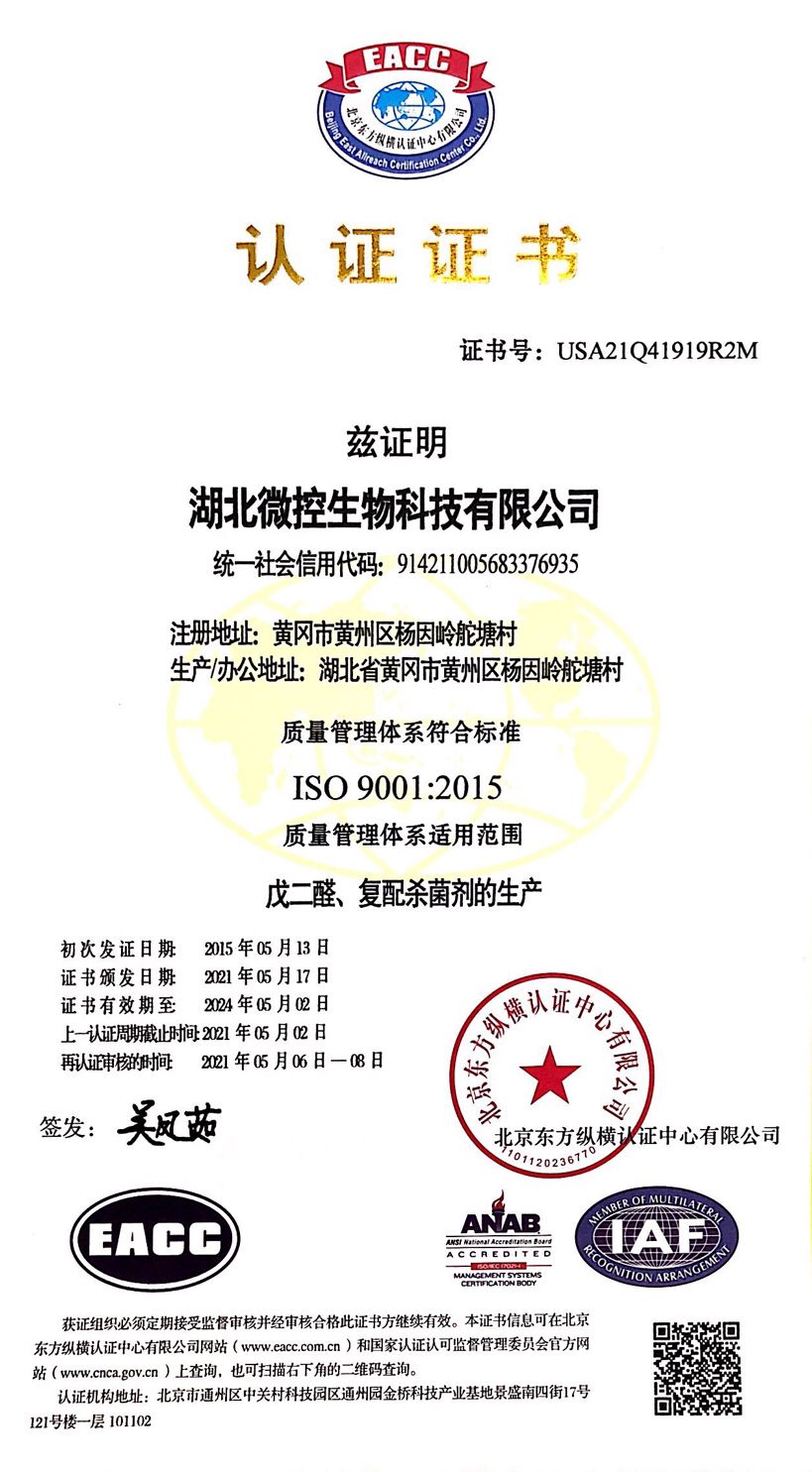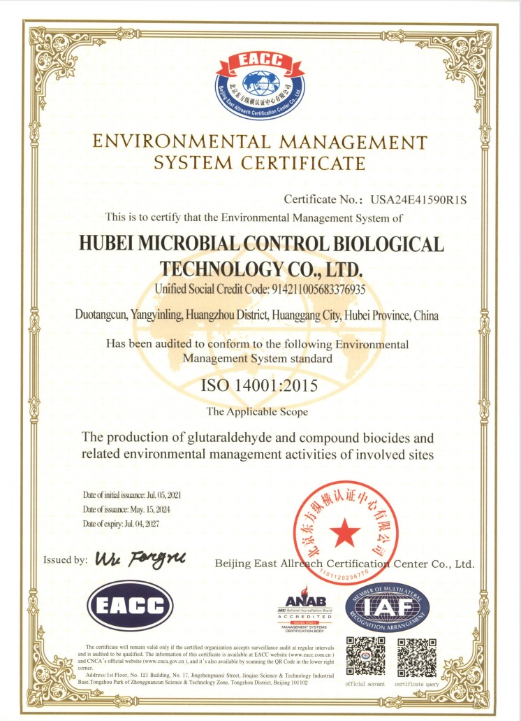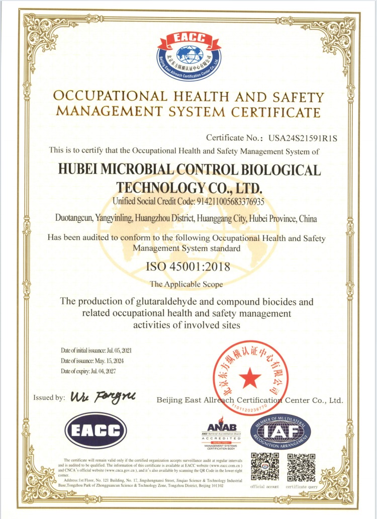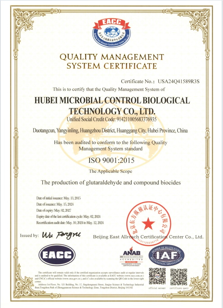 Hubei Champion product (Glutaraldehyde) Certificate 2022-2024